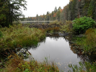 Today’s Photos: (1) Fall colors along the road from Long Lake to Newcomb; and (2) A Beaver Dam and Pond at Aunt Polly’s B & B, Newcomb, NY