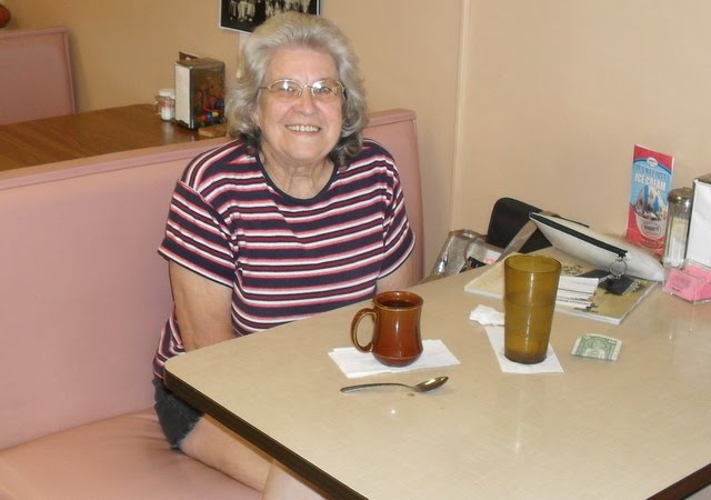 Free Pie in Payne! We stopped at The Dog House Diner in Payne for some iced tea and great homemade apple pie. A bike was parked out front. When we went in, the sole customer greeted us as "fellow bikers." Her name was Shirley Flores. She's been the local Avon Lady for 32 years - she'll be 70 next spring, but, like Riley, certainly doesn't look it! She has always biked - she said she never wanted to learn to drive and let several Learner's Permits expire as a teenager until she figured out she just wasn't going to be a driver! She also paid for our pie and iced tea, saying that whenever she met cross-country cyclists in town she bought their meal so they'd remember the Biking Avon Lady in Payne!